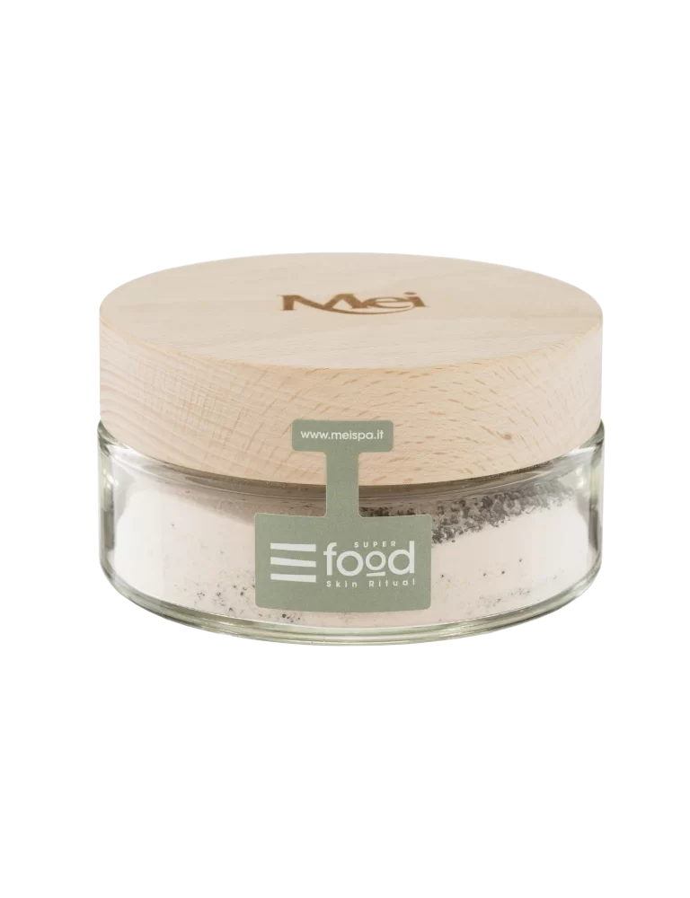 Uno speciale scrub di nuova generazione, di concezione alimentare, realizzato in forma di polvere micronizzata che concentra gli attivi dei vegetali contenuti. La formula in purezza viene riattivata in modo da ridare vita alla ricetta trasformandola in una polpa fresca di vegetali, grazie all’estratto di polpa fresca di mango, semi di vinaccioli d’uva, riso micronizzato, alginato di alghe, silicio, microsfere di zucchero. Un vero alleato per la bellezza