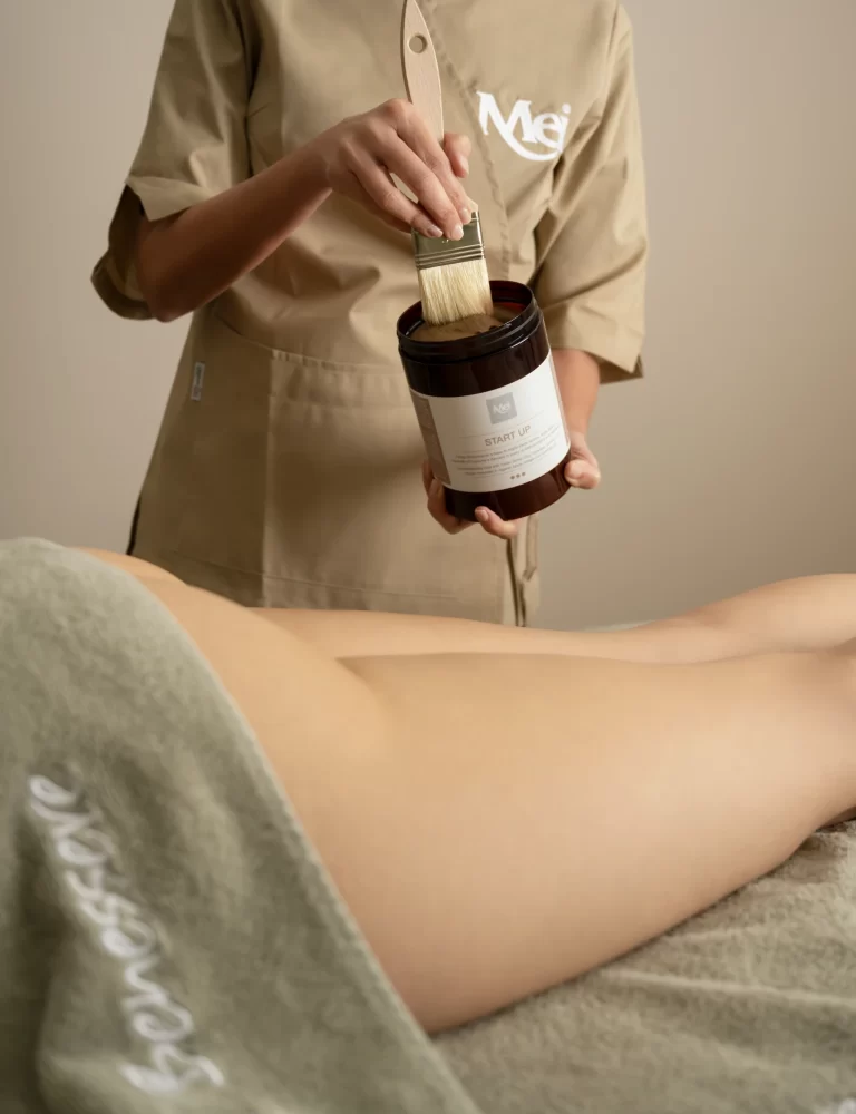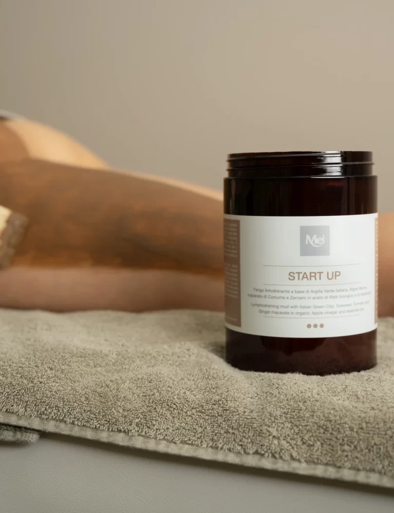 Un efficace e intensivo trattamento che deve la sua azione alle proprietà degli otto oli essenziali attivati da curcuma e zenzero in aceto di mele biologico. A un piacevole massaggio disintossicante con lo scrub all’argilla e mela verde, segue un cataplasma con lo speciale cataplasma erboristica MEI START UP. Il mirato massaggio drenante e l’applicazione finale di gel al ginepro selvatico completano il trattamento scientificamente studiato per riattivare la circolazione, contrastare i gonfiori e dare sollievo alle gambe, tonificando addome e glutei. Il trattamento può essere esteso anche a tutto il corpo, seno compreso.